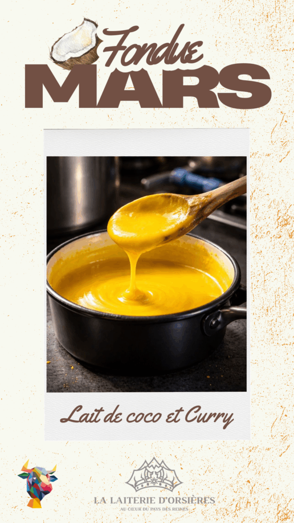 Ce mois-ci, laissez vous séduire par notre fondue au lait de coco et curry : douce, parfumée et légèrement épicée, elle évoque les premiers rayons de soleil et la fraîcheur des fleurs de printemps :